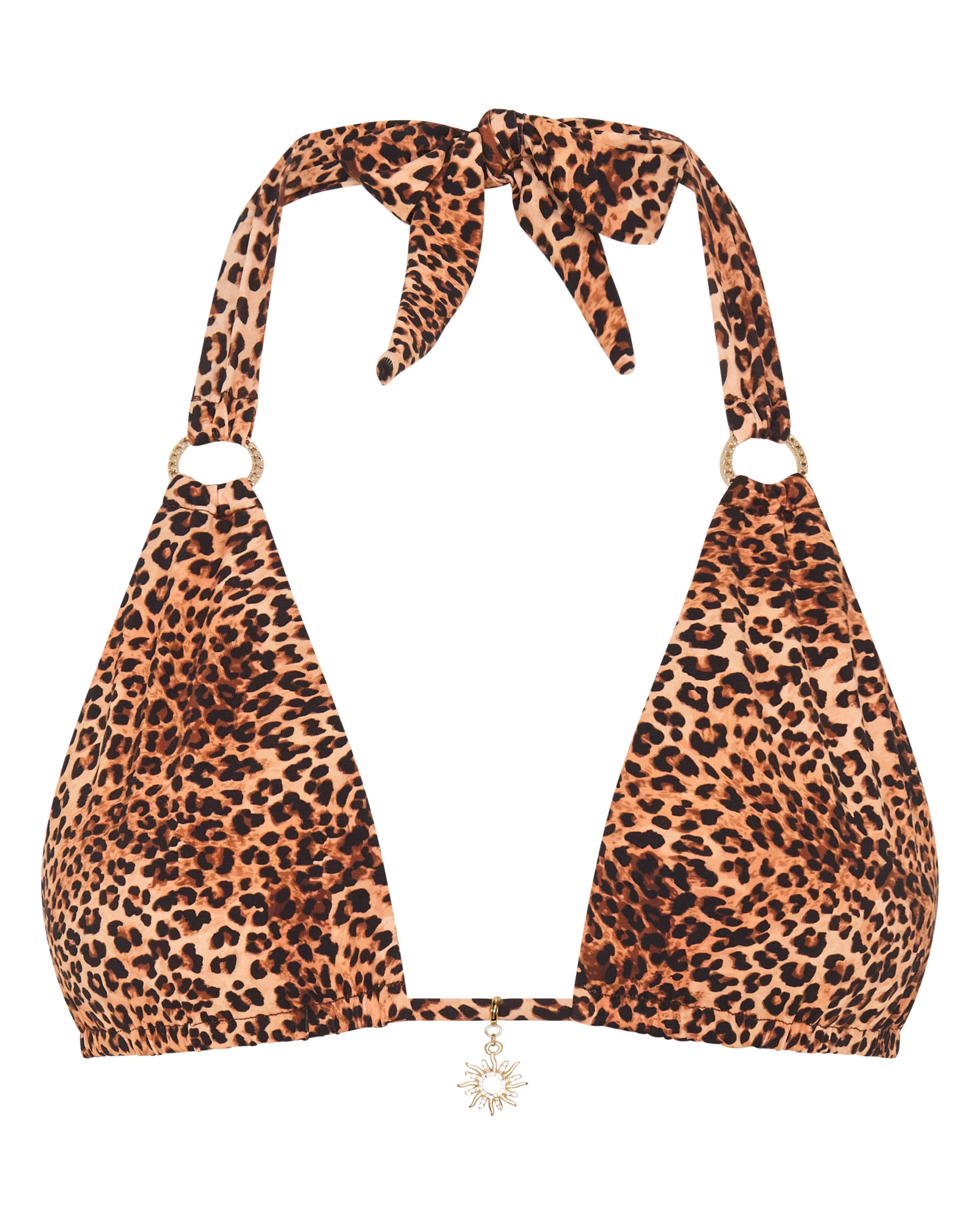 Featuring oversized ties around the neck for a bold, adjustable fit, it’s finished with gold ring accents on the straps and our signature sun charm at the centre front.
